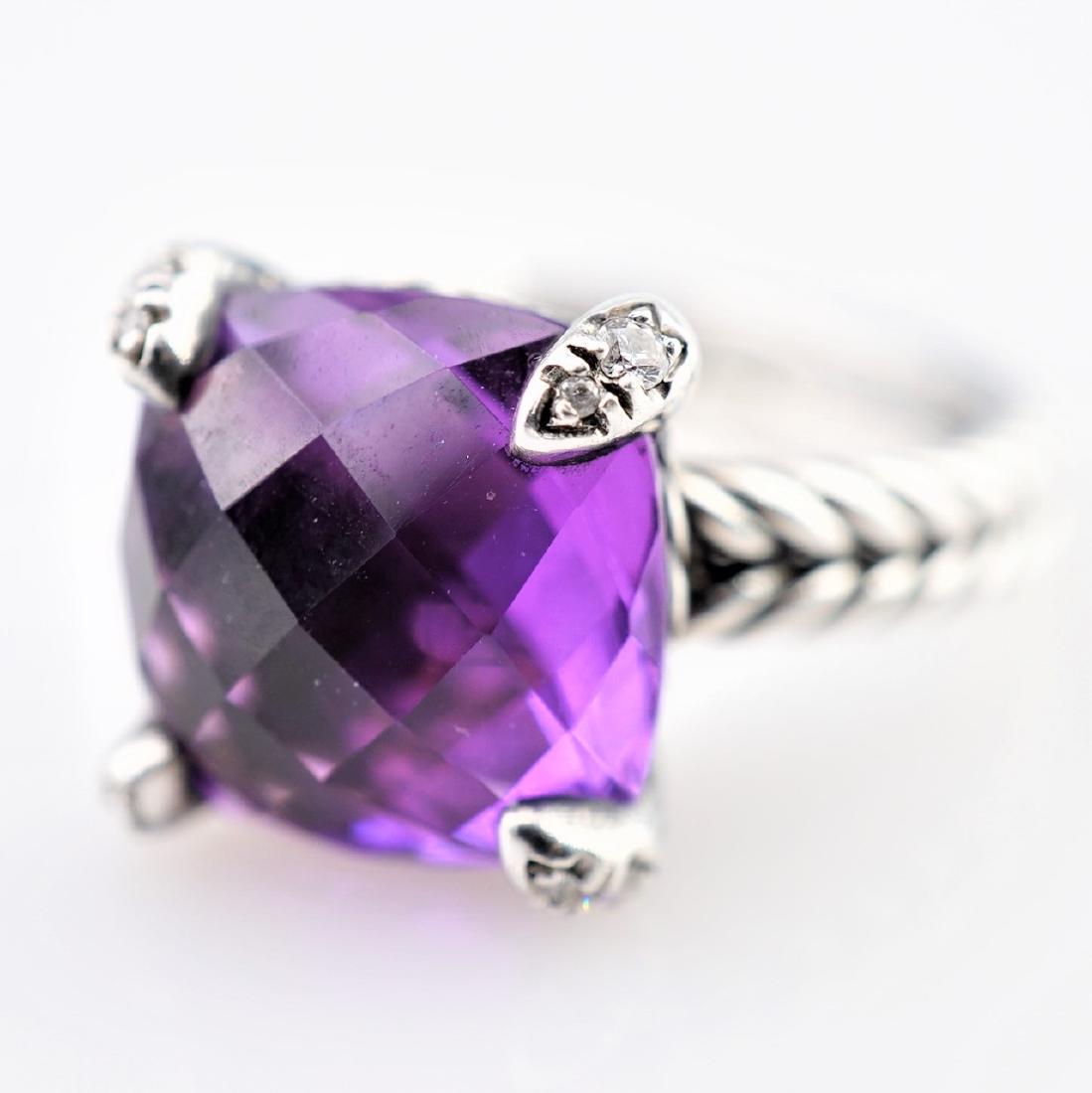 David Yurman Amethyst Diamond Sterling Silver Wheaton Ring